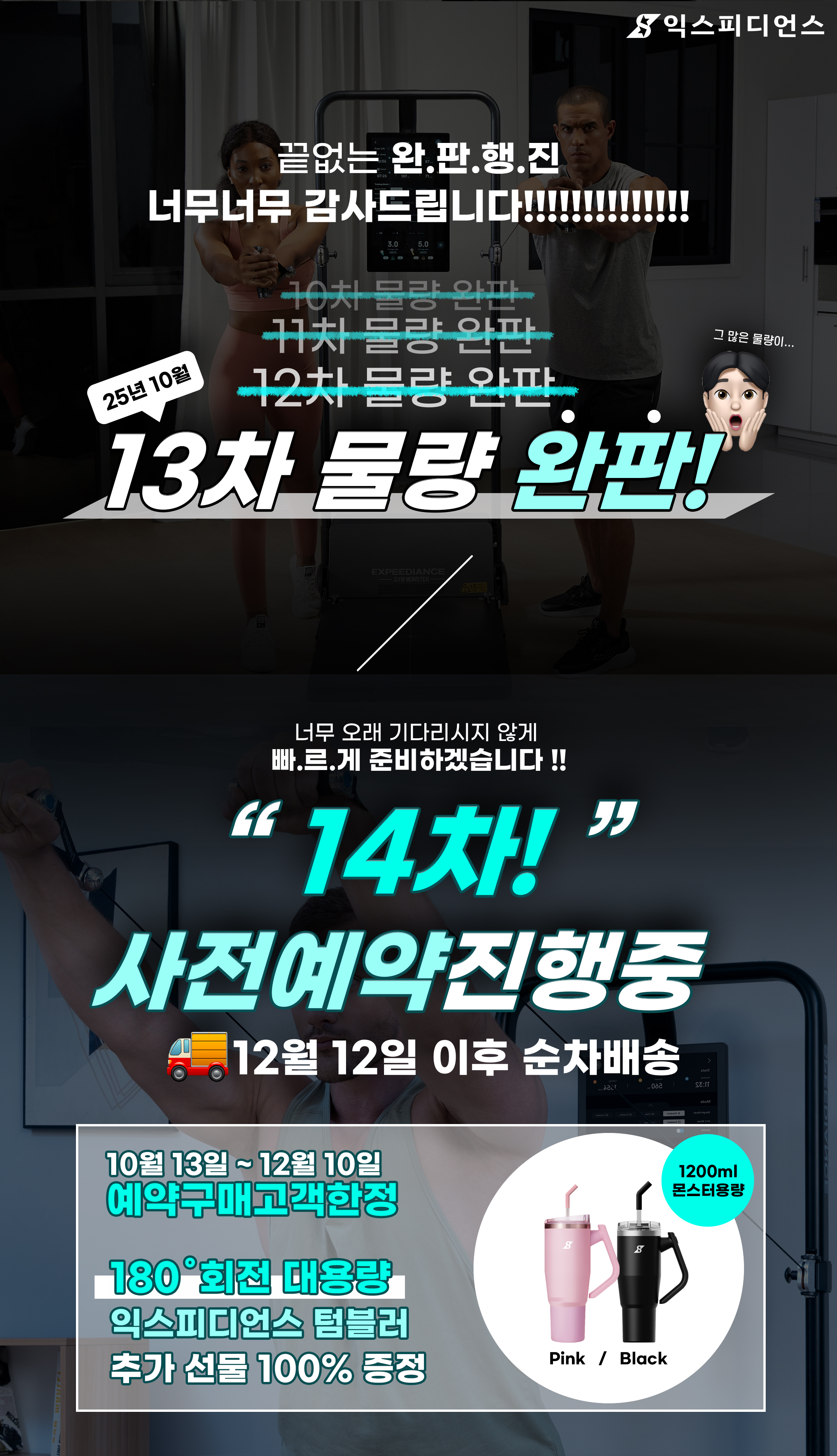익스피디언스 대용량 회전 핸들 빨대 텀블러 블랙 1200ml